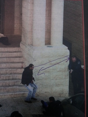 نشرت صحيفة "يديعوت احرنوت" العبرية في عددها الصادر صباح الخميس صورة لاول مرة تظهر شرطيا اسرائيليا يطلق النار من مسدسه ومن مسافة صفر باتجاه الشهيدين غسان وعدي ابو جمل منفذي عملية الكنيس.