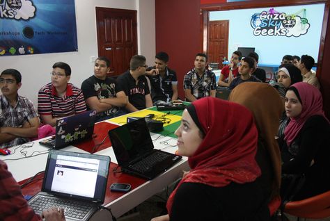 وأُطلقت "Gaza Sky Geeks" عام 2011 بدعم من موقع "جوجل" الشهير، وهدفها امداد الشركات التكنولوجية الغزية المبتدئة بالدورات التدريبية في ريادة الأعمال التنافسية، ويأمل في تعزيز الاستثمارات الناشئة، وتعزيز الدور القيادي للمرأة الفلسطينية.
