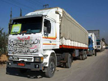 توجهت قافلة مساعدات تحمل 141 طنا من المواد الغذائية الاثنين الى غزة، بحسب وكالة الانباء الرسمية (سانا).
