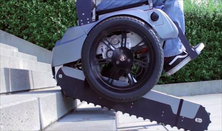 تعاون عشرة طلاب جامعيين بسويسرا في ابتكار كرسي متحرك آلي بإمكانه صعود أنواع السلالم، سواء كان السلم حلزونيا أو خشبيا أو معدنيا أو زجاجيا.