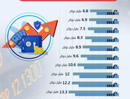 من جهته، ذكر المحلل المالي أمين أبو عيشة أن حجم الودائع في البنوك العاملة في فلسطين بلغ عام 2008 قرابة 6.5 مليار دولار، وفي العام 2012 تقريبا 8 مليار دولار، في حين تبلغ حاليا نحو 10 مليار.