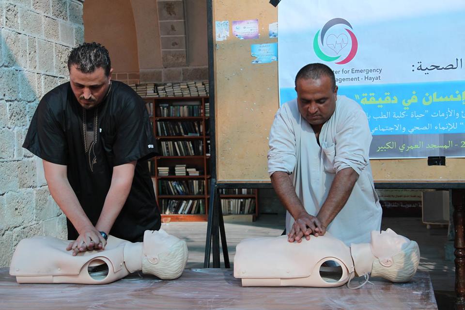 والجدير بالذكر أن الفعالية استهدفت أهالي الحي والمصلين في المسجد العمري الكبير والمساجد المحيطة به حيث تم تدريبهم علي كيفية إنقاذ حياة إنسان وجد مغشيا عليه في أي مكان من خلال "إنعاش القلب الرئوي" في دقيقة واحدة، وكيفية التعامل مع الشخص المصاب وقت الأزمات من أجل الحفاظ علي حياته قدر الإمكان.