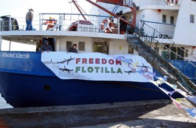 اعترضت البحرية الصهيونية اليوم سفينة ريتشل كوري الايرلندية في عرض المياه الإقليمية لقطاع غزة.