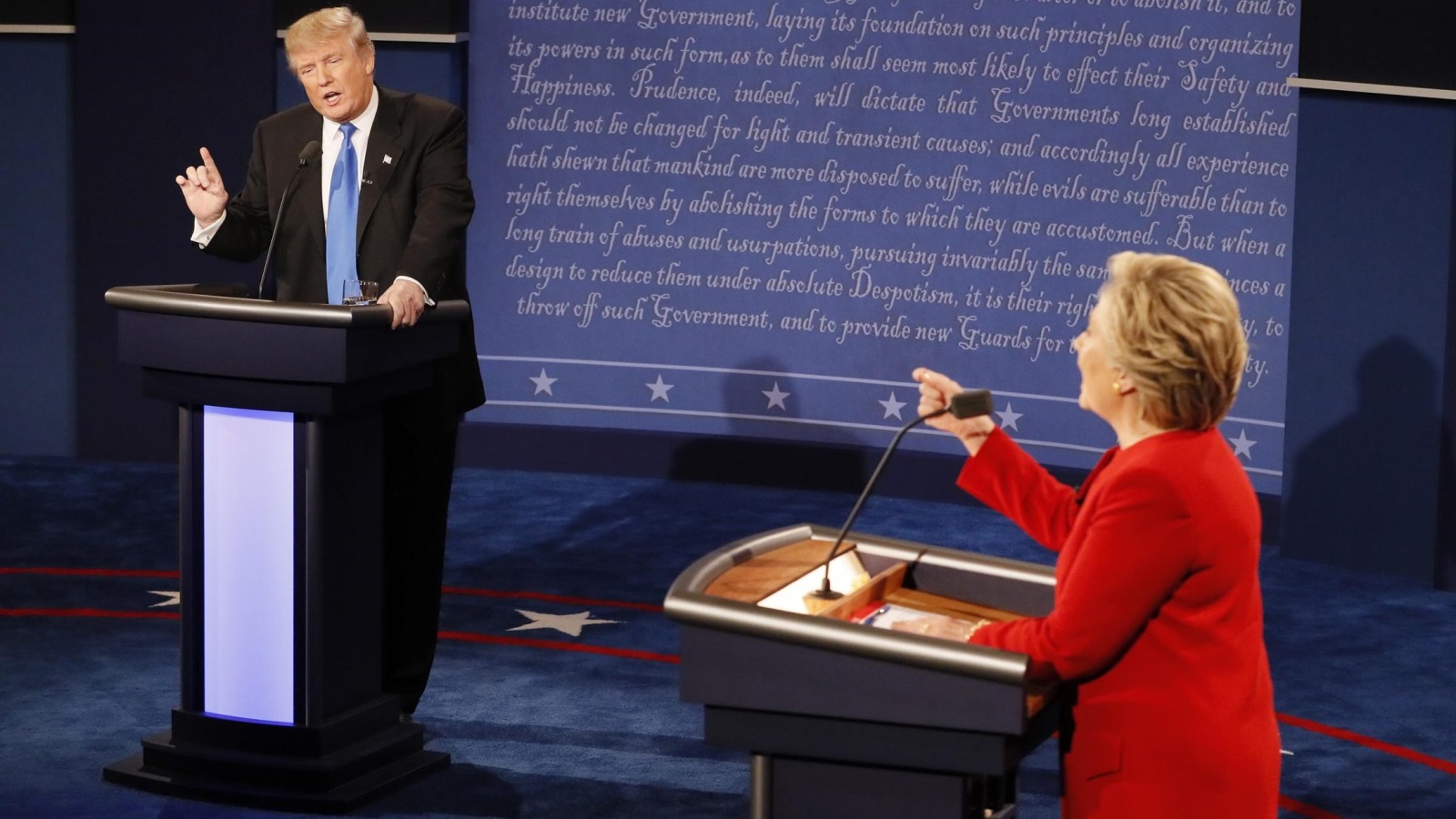 في المقابل، اتهم المرشح الجمهوري منافسته الديمقراطية بأنها تسببت أثناء توليها وزارة الخارجية بفوضى "عارمة" في الشرق الأوسط، ووجه خطابه إليها "انظري إلى الشرق الأوسط.. إنه في حالة فوضى عارمة، وهذا أمر حصل إلى حد بعيد في ظل إدارتك".