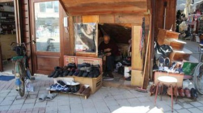 يواصل الإسكافي التركي “عابدين أوزون” العمل بمهنته في بلدة “أدا بازاري” بولاية صقاريا (شمال) منذ ستين عاماً في محل لا تتجاوز مساحته ثلاثة أمتار، وارتفاعه مترا و30 سم، حيث لا يتمكن من الوقوف فيه لانخفاض سقفه.