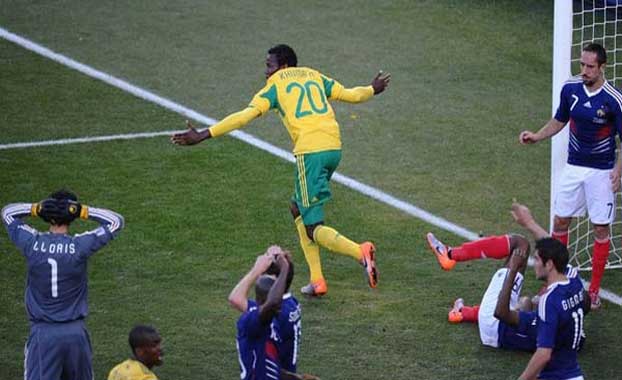 وتكرر سيناريو كأس أوروبا 2008 ونهائيات مونديال 2002 بالنسبة لفرنسا عندما تعادلت في المونديال الحالي مع الأوروغواي صفر-صفر في الجولة الأولى وخسرت أمام المكسيك (صفر-2) ثم جنوب أفريقيا التي ودعت النهائيات الأولى على الأراضي الأفريقية بفوز شرفي لم يجنبها أن تكون أول بلد مضيف يفشل في التأهل إلى الدور الثاني.