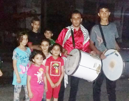 يفتقد حازم الطفلين إبراهيم ومحمد والذي اعتاد أن يشدا طرف كوفيته ليدخلاه صوب باحة منزلهما ليبتهجا به وهو يقرع الطبول ليوقظ أهل البيت.