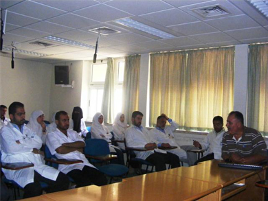واستعرض ا.رشدي رصرص  مدير المختبر في المستشفى الطرق المختلفة المتبعة في تطبيق معايير الجودة في دائرة المختبر بالمستشفى والتي تتضمن مراحل ما قبل إجراء التحاليل وإجراء التحاليل وإخراج التحاليل بالإضافة إلى إخراج النتائج وتدقيقها بالإضافة إلى إجراء  عملية تقييم شاملة لهذه المعايير الشاملة من خلال مراجعتها والتأكد من جدواها بعدم وجود أخطاء.