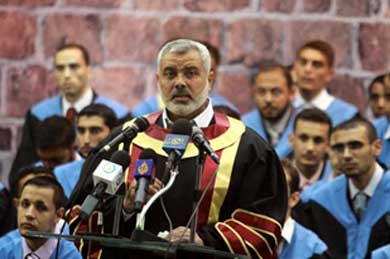 وقال هنية خلال حفل تخريج الفوج التاسع والعشرين في الجامعة الإسلامية بغزة الأحد: "نحن لا ندعو إلى انفصال غزة عن بقية الأرض الفلسطينية (..) قلنا لا لخطة أفغيدور ليبرمان (وزير الخارجية الإسرائيلي) لفصل غزة عن بقية أجزاء الوطن".