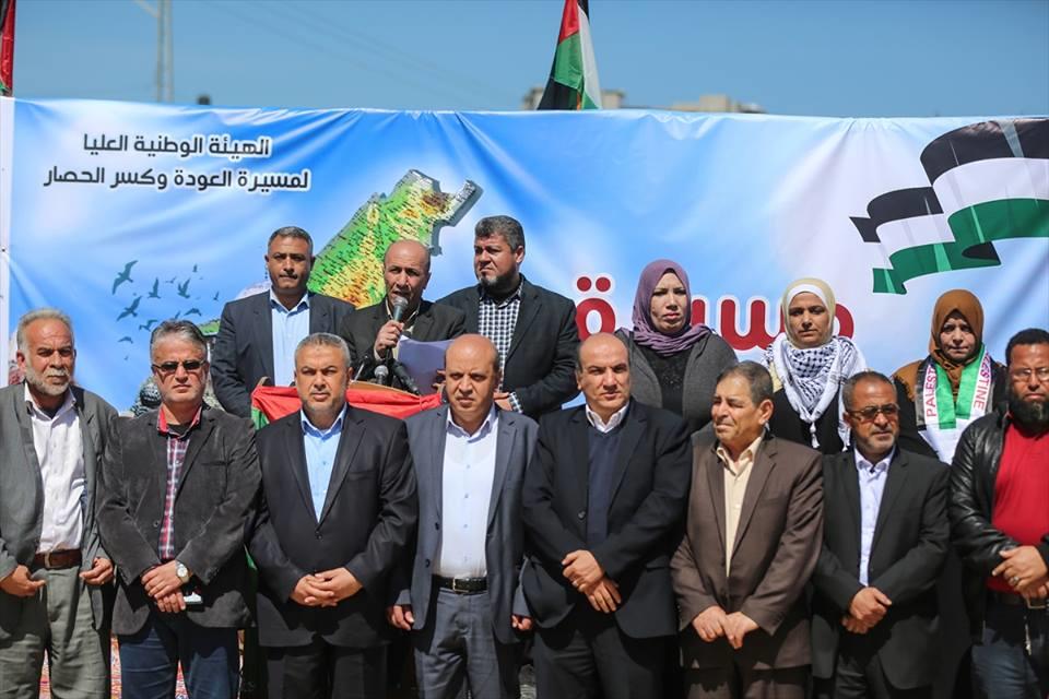 أجمعت فصائل فلسطينية، أن فعاليات مسيرة العودة الكبرى المقررة نهاية الشهر الجاري، تهدف لاستعادة حقوق الشعب الفلسطيني التي سلبها الاحتلال الإسرائيلي، وتسعى الإدارة الأمريكية في الوقت الجاري لطمسها من خلال ما يسمى بصفقة القرن، وشطب قضية عودة اللاجئين العادلة.