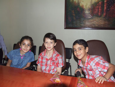 وشاركه الحديث أخاه الأصغر المعتصم بالله الملقب بـ"عصومي" قائلاً:"أنا أحب أطفال غزة كثيراً وان شاء الله كل الصمود والصبر لكم ونسأل الله أن يسعدهم بما قدمناه لهم وان نكون رسمنا على شفاههم السرور والفرحة الكبيرة".