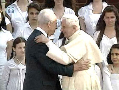 أعرب البابا بنديكتوس السادس عشر عن الأمل بالتوصل إلى اتفاق "يحترم التطلعات المشروعة للشعبين الفلسطيني والإسرائيلي"، وذلك لدى استقباله الرئيس الإسرائيلي شيمون بيريز في منتجعة الصيفي قرب روما.