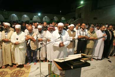 وقد أم رئيس الوزراء بجموع المصلين الغفيرة التي اكتظت بهم ساحة المسجد العمري الكبير وسط غزة في صلاتي العشاء والتراويح، رحب بعدها بأعضاء الوفد الجزائري الزائر لغزة وما يحمله من مساعدات إنسانية لإخوانه الأشقاء في فلسطين.