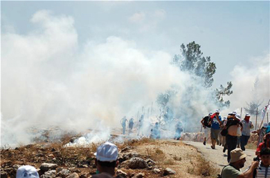 وقال راتب أبو رحمة منسق اللجنة الشعبية في بلعين غرب رام الله لـ"الرسالة نت" إن الفتيين أمجد أبو رحمة وفادي فضل (16 عاما) أصيبا بجروح متوسطة إضافة إلى شاب ثالث بعد اصطدام قنابل الغاز بأجسادهم مباشرة، لافتاً إلى أن عشرات حالات الاختناق وقعت في صفوف المشاركين في المسيرة الأسبوعية بعد إطلاق جنود الاحتلال القنابل الغازية تجاههم.