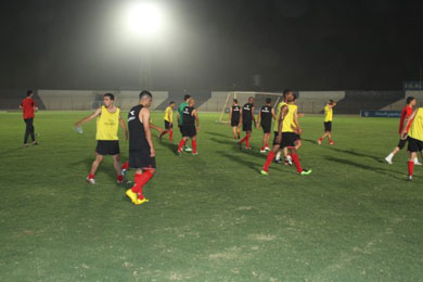 أجرى المنتخب الفلسطيني لكرة القدم الاثنين الماضي حصتين تدريبيتين صباحية، كانت الأولى على أحد الملاعب المعشبة صناعياً بالمدينة الرياضية والثانية على ملعب الكرامة بمدينة الحسين الرياضية .