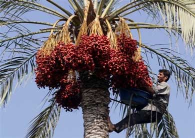 في موسم الياقوت الأحمر .. جني البلح لمن يعامل النخلة كانسان