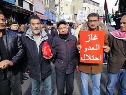 جدد المئات في مسيرة انطلقت من أمام المسجد الحسيني، وسط العاصمة عمّان تنديدهم باتفاقية الغاز الإسرائيلي الذي بدأ يصل إلى المملكة اعتباراً من مطلع الشهر الجاري.