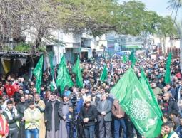 كما رفعوا شعارات ترفض تصفية القضية الفلسطينية وإلغاء حق العودة، وترفض مزيدا من التوسع على حساب أراضي الضفة الغربية، مشددين في الوقت ذاته على أن أرض فلسطين كاملة من النهر إلى البحر.
