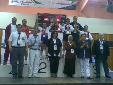 في اولمبياد سوريا بلسان متلعثم نظراً لإعاقته: شاركت في مسابقة رفع الأثقال بسوريا وتمكنت من رفع 70كليو غرام وحصلت على ميدالية ذهبية برونزية وفضية، ويقطع الحديث زميله محمود أبو شرخ الذي وقف على الشرفة إلى جواره يشير إليه بإيماءات خاصة وابتسامات تظهر فرحتهم بالنصر وإجراء حوار صحفي فيقول: شاركت برفع 60 كيلو غرام وحصلت فيها على ميدالية برونزية.