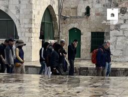 وقال شهود عيان لـ"الرسالة نت" إن مجموعات صغيرة من المغتصبين تتكون الواحدة منها من ثلاثة أو أربعة أفراد، قامت باقتحام باحات المسجد من باب المغاربة منذ الساعة السابعة صباحا.