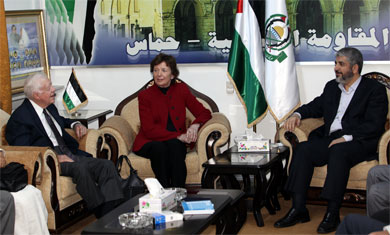 التقى وفد هيئة الحكماء الدولية برئاسة رئيسة جمهورية إيرلندا السابقة ماري روبنسون وعضوية الرئيس الامريكي السابق جيمي كارتر بقيادة حركة المقاومة الإسلامية حماس برئاسة رئيس المكتب السياسي للحركة خالد مشعل في العاصمة السورية دمشق.