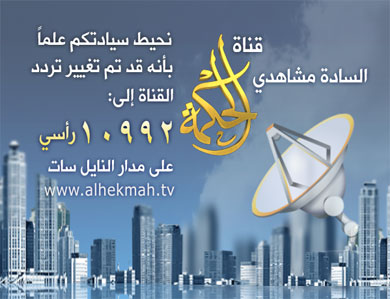 بدأت قناة الحكمة المغلقة بقرار رسمى إعادة البث من جديد على القمر الصناعى أتلنتك بيرد على التردد 10992 رأسى مدار النايل سات.