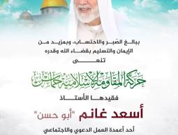 نعت حركة المقاومة الإسلامية "حماس"، أحد قادتها الدكتور علم الدين شحادة أبو عاصي، الذي وافته المنية عن عمر ناهز (66 عامًا) بعد صبر وصراع طويل مع المرض.