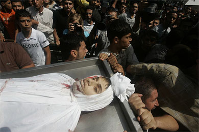 وبين التقرير الشهري، أن الاحتلال الصهيوني أطلق عدداً من القذائف المدفعية في مناطق مختلفة من قطاع غزة مستهدفاً بذلك الأراضي الزراعية ومنازل المواطنين حيث أصابت إحدى القذائف المواطن جهاد صبحي عفانة 20 عاماً مما أدى إلي استشهاده على الفور شرق جباليا.