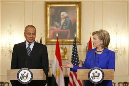 وكان أبو الغيط اعلن ان زيارته لواشنطن برفقة سليمان كانت للتشاور مع هيلاري كلينتون حول عملية السلام فى الشرق الأوسط واستئناف المفاوضات المتوقفة بين الاسرائيليين والفلسطينيين.