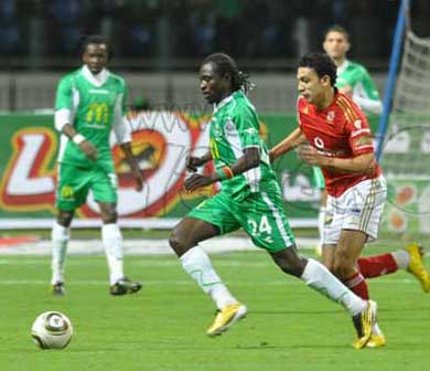 وفرض الاهلي سيطرته على مجريات المباراة فيما لجأ اصحاب الارض للاعتماد على الهجمات المرتدة.
