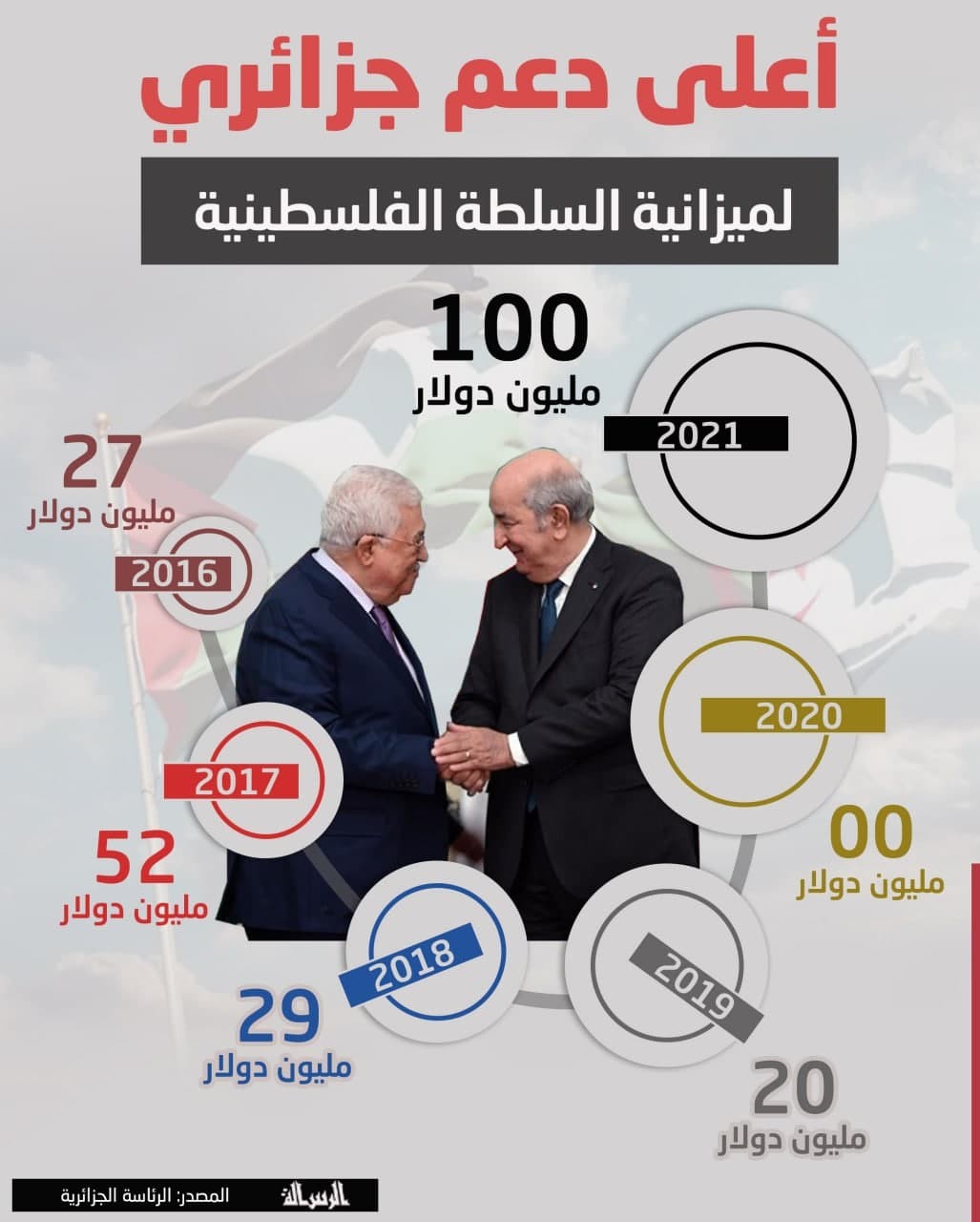 #انفوجرافيك .. أعلى دعم جزائري لميزانية السلطة الفلسطينية