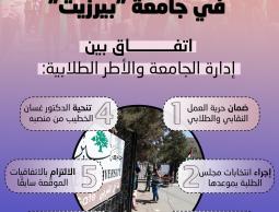 وتضمن الاتفاق عدم تكرار الأزمة، وعدم محاسبة الطلبة على النشاطات النقابية والسياسية ضمن النظام المعمول به داخل الجامعة.