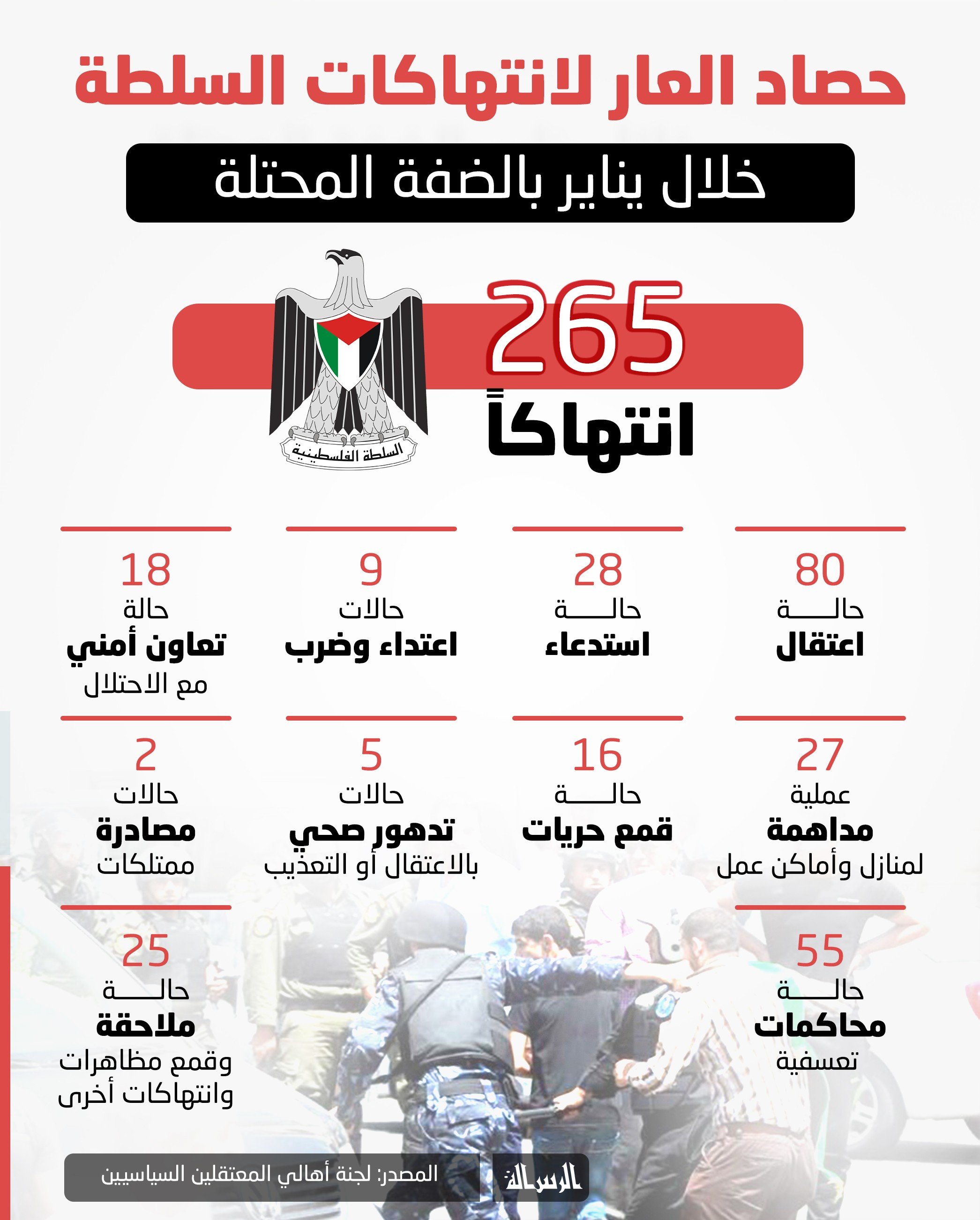 حصاد العار لانتهاكات السلطة بالضفة خلال يناير