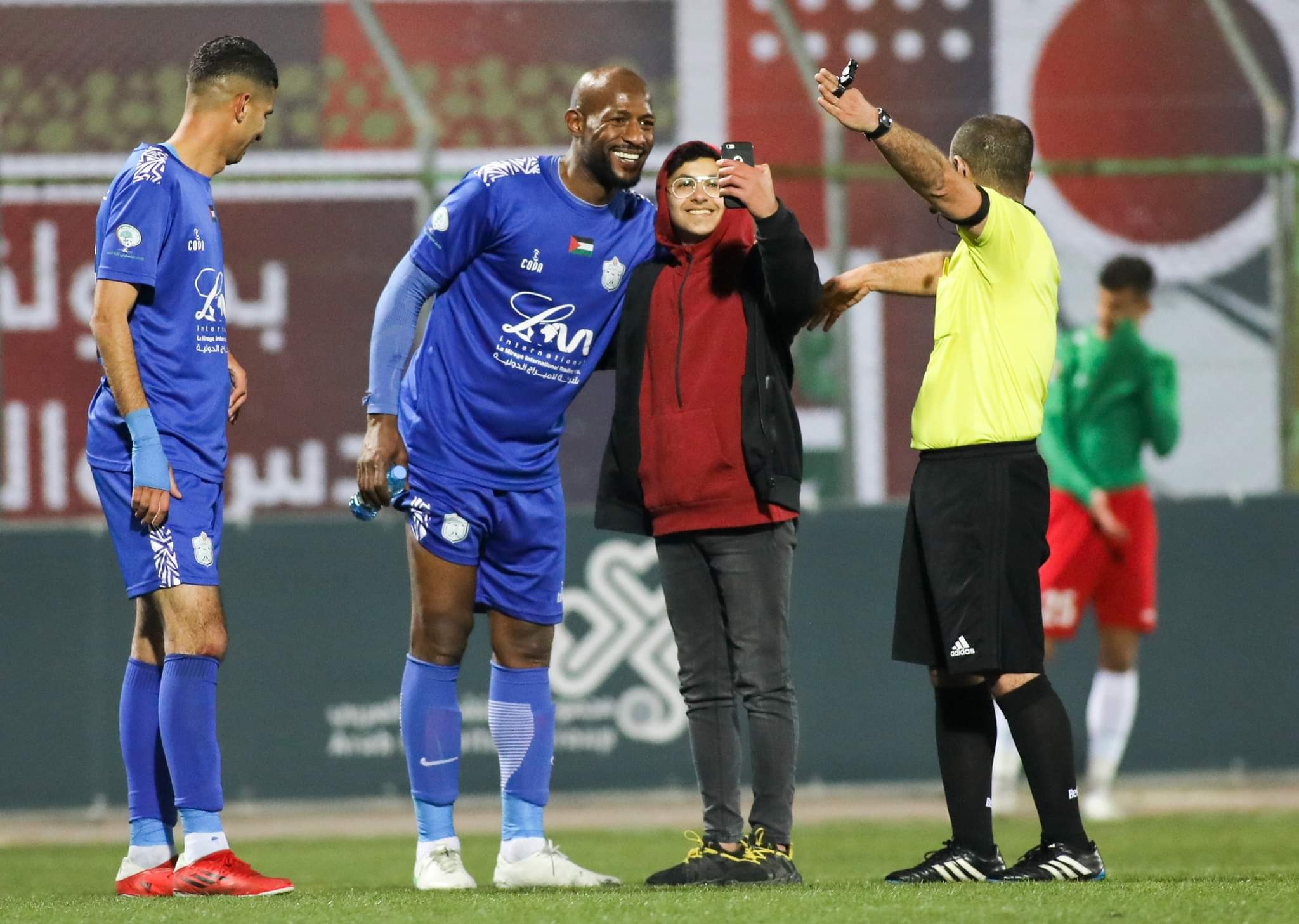 وأجبر المشجع الفلسطيني الحكم على وقف المباراة بعدما وصل إلى أسطورة كرة القدم الفلسطينية عبد اللطيف البهداري داخل الملعب لأخذ صورة "سيلفي" معه في لقطة طريقة تحدث لأول مرة في الملاعب الفلسطينية.