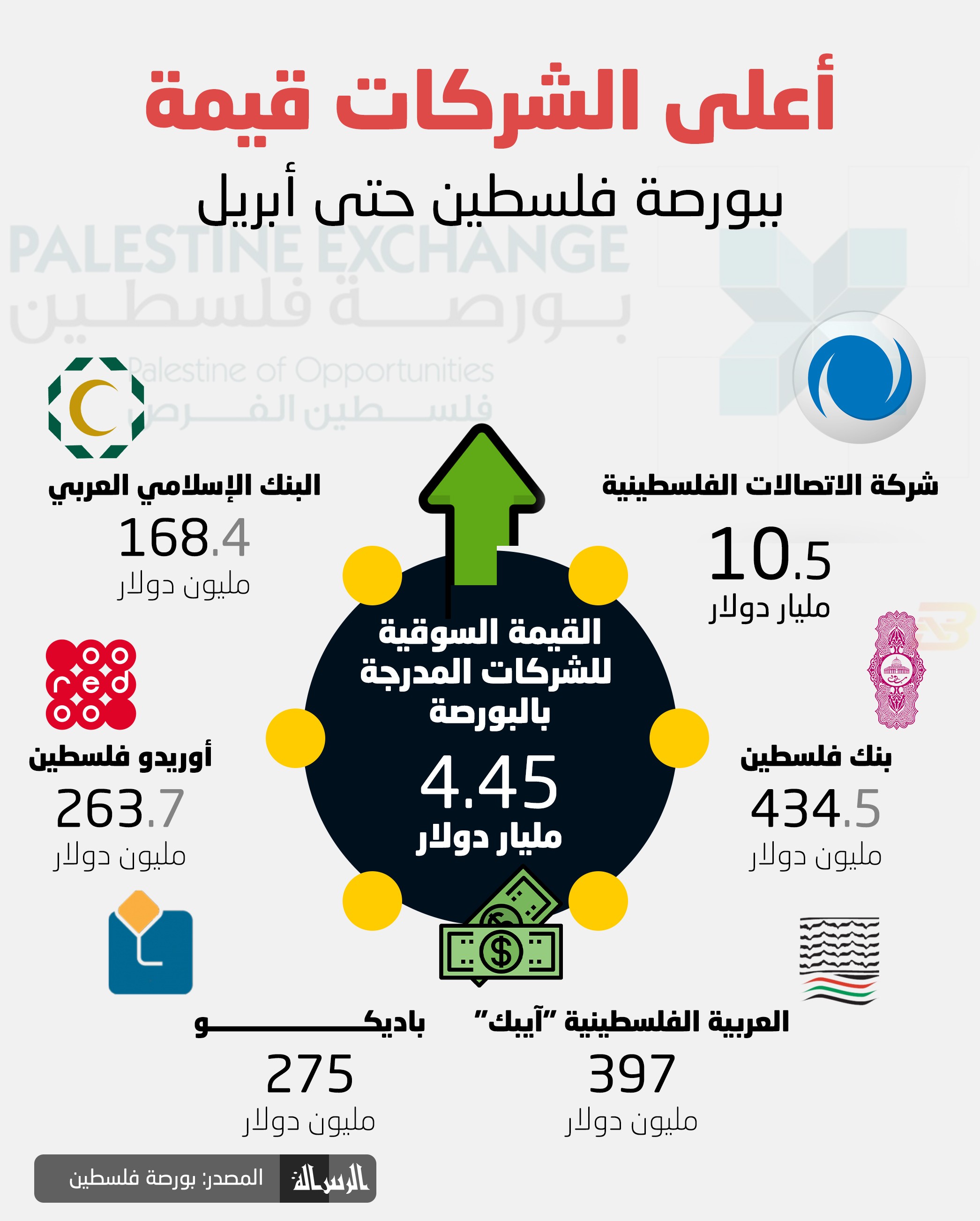 انفوجرافيك: أعلى الشركات قيمة ببورصة فلسطين