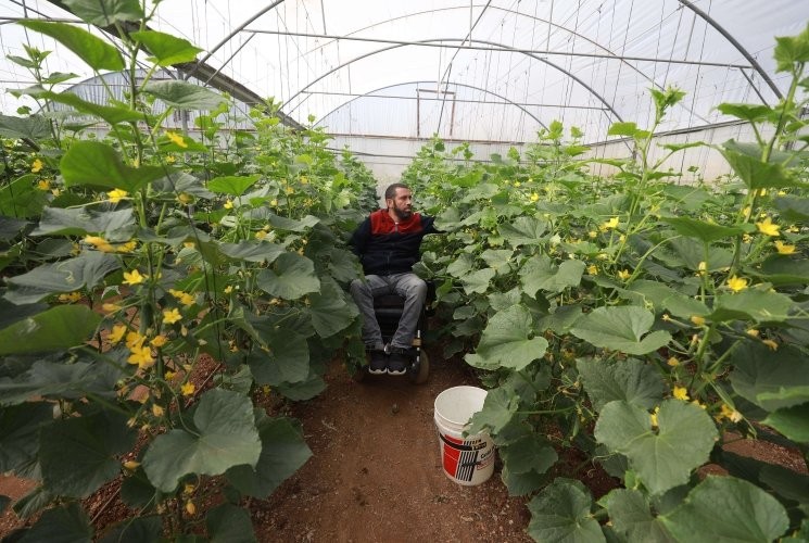 منذ ساعات الفجر الأولى يتوجه الفلسطيني، راني برناط (42 عاماً)، لمزرعته لجني ثمار الخيار، ليعيل أسرته، متحدياً إعاقته ورصاص جيش الاحتلال (الإسرائيلي) الذي تسبب في هذه الإعاقة.