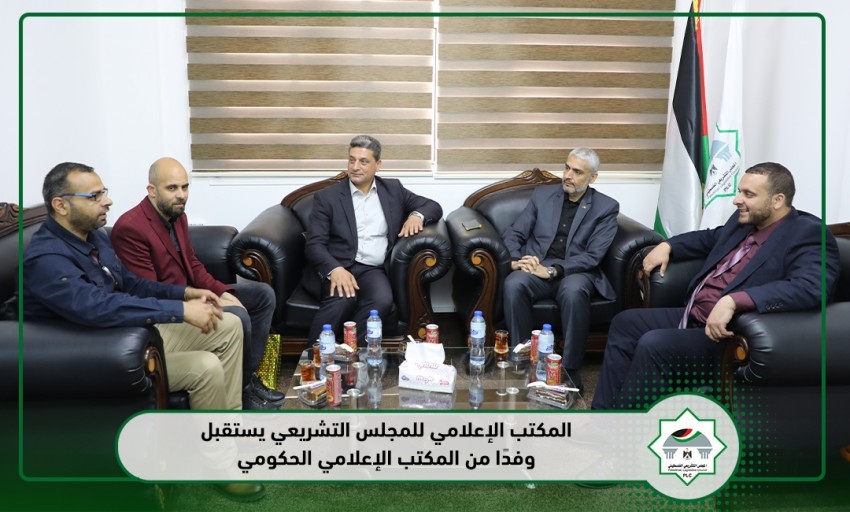 استقبل المكتب الإعلامي للمجلس التشريعي وفدًا من المكتب الإعلامي الحكومي، لبحث التعاون والتنسيق بينهما، وتطوير العلاقة، وتهنئة مدير عام الاعلام والعلاقات الدولية بالتشريعي على توليه منصبه مؤخرًا.