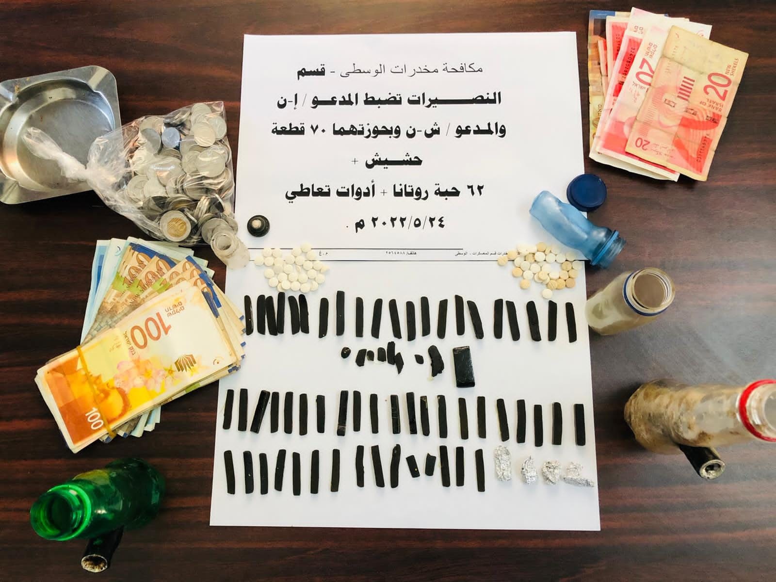 وأضافت المكافحة أنه تم خلال مهمة التفتيش ضبط 70 قطعة حشيش و62 حبة مخدرة من نوع روتانا، كانت مُعدة ومجهزة للترويج؛ بالإضافة إلى مبلغ مالي متحصل من جريمة الترويج.