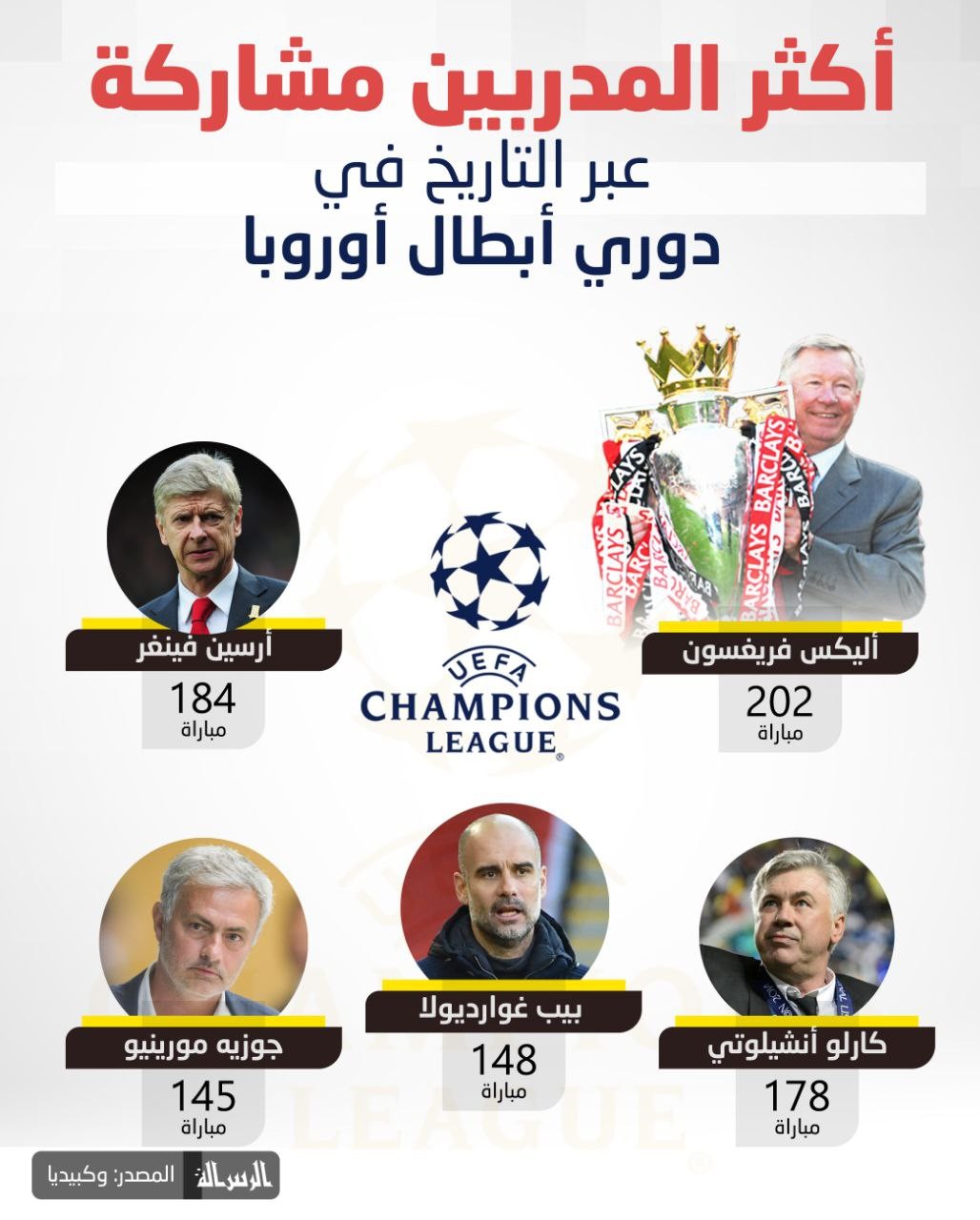 أكثر المدربين مشاركة في تاريخ #دوري_أبطال_أوروبا