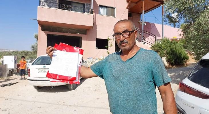 وبحسب مصادر محلية، سلمت قوات الاحتلال أحمد عبد القادر، وحسين حسن، وثائر حسين، ووائل حجير، وعلاء عبد الفتاح، ومحمد عوض أبو الهيجاء، ونصفت ناجي، إخطارات بوقف البناء في منازلهم غرب القرية وجنوبها.
