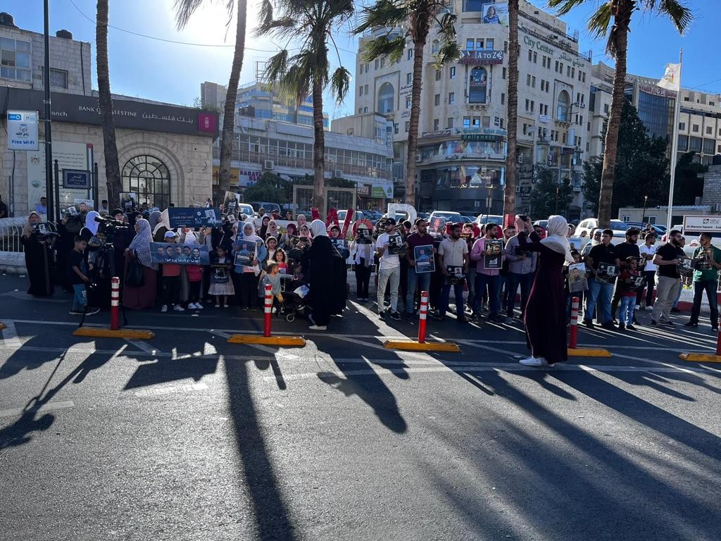 واجتمع عشرات المواطنين من أهالي المعتقلين السياسيين وأطفالهم إلى جانب نشطاء على دوار المنارة وسط مدينة رام الله.