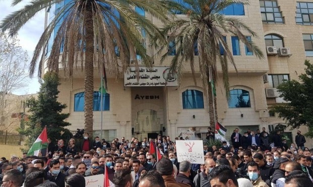 وأعلن مجلس النقابة تعليق العمل الشامل أمام المحاكم بمختلف أنواعها ودرجاتها النظامية والعسكرية والإدارية ومحاكم التسوية والمحكمة العليا، اليوم الإثنين، بما يشمل النيابات المدنية والإدارية والعسكرية والدوائر الرسمية ودوائر التنفيذ وكتّاب العدل وإخلاء مقرات المحاكم جميعها من المحامين وموظفي النقابة، باستثناء الإجراءات المتعلقة بالمدد القانونية فقط.