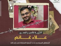 وتواصل أجهزة السلطة اعتقال الأسير المحرر علاء غانم من قلقيلية لليوم الـ51 يومًا على التوالي، وأصدرت بحقه أمر تمديد اعتقال جائر لمدة 45 يومًا.