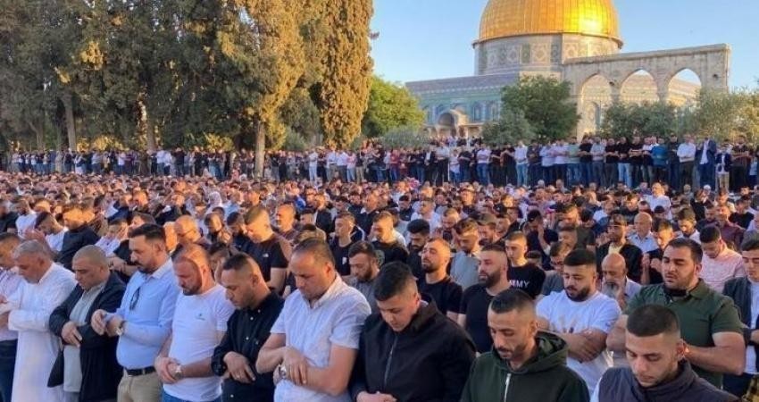 ومنذ ساعات الصباح أم المسجد آلاف المواطنين من القدس والداخل الفلسطيني المحتل، رغم تشديدات الاحتلال وتضييقه وخاصة على سكان الضفة الغربية.