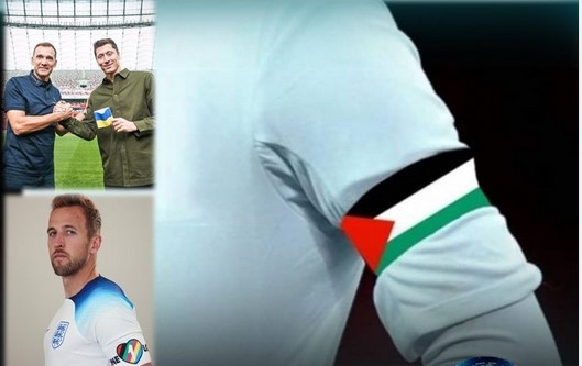 وكان قائد منتخب بولندا ليفاندوفيسكي تسلم شارة قيادة المنتخب بألوان علم أوكرانيا لدعمها ضد روسيا، فيما أعلن قائد إنجلترا هاري كين ارتدائه شارة لدعم الشواذ ومعه 9 من قادة المنتخبات الأوروبية الأخرى رغم علمهم أن الدولة المستضيفة "قطر" ترفض السماح بأي أنشطة لدعم المثليين.