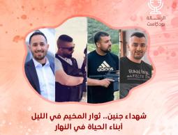 ثلاثة شهداء ورابعهم عبد خازم، الذي عرفتنا بالأمس طلة والده وعنفوانه وصبره عنه، حتى أصبحت عائلة خازم وحدها تعريفا آخر مرتبط بجنين، في كل شبر فيها قصة شهيد ومقاتل وشوارع لا تنام ولا تلين.
