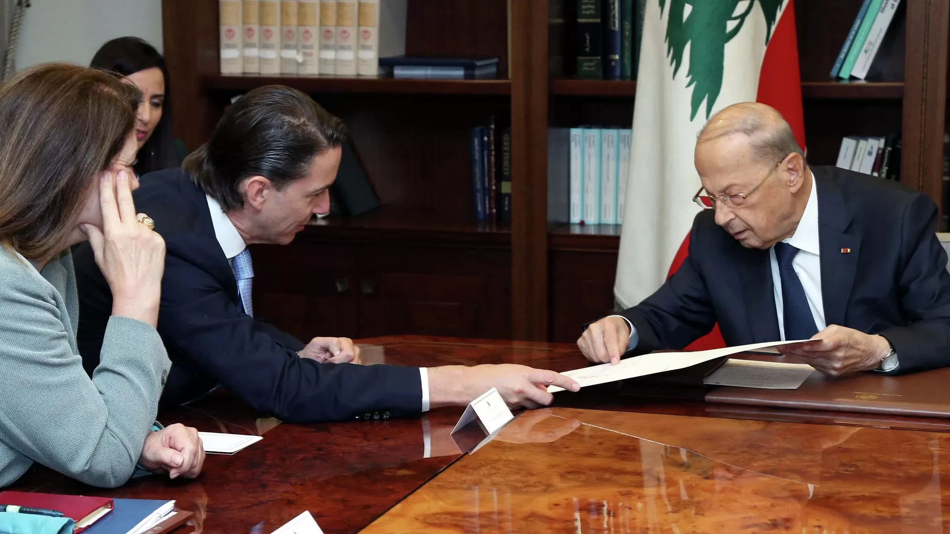 أعلنت الرئاسة اللبنانية، اليوم السبت، أن الرئيس ميشال عون تسلم رسالة خطية من الوسيط الأمريكي بشأن الاقتراحات المتعلقة بترسيم الحدود البحرية مع (إسرائيل).