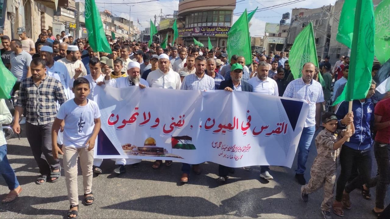 نظمت حركة المقاومة الإسلامية حماس، بعد صلاة الجمعة، مسيرة جماهيرية حاشدة في محافظة خانيونس بقطاع غزة؛ نصرة للمسجد الأقصى المبارك.