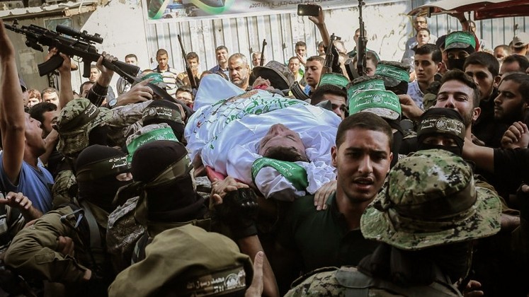 زفت كتائب الشهيد عز الدين القسام الجناح العسكري لحركة المقاومة الإسلامية "حماس" إلى العلا، السبت، المجاهد شاكر إبراهيم دبور من بيت حانون شمال قطاع غزة، والذي ارتقى أثناء عمله في نفق للمقاومة.