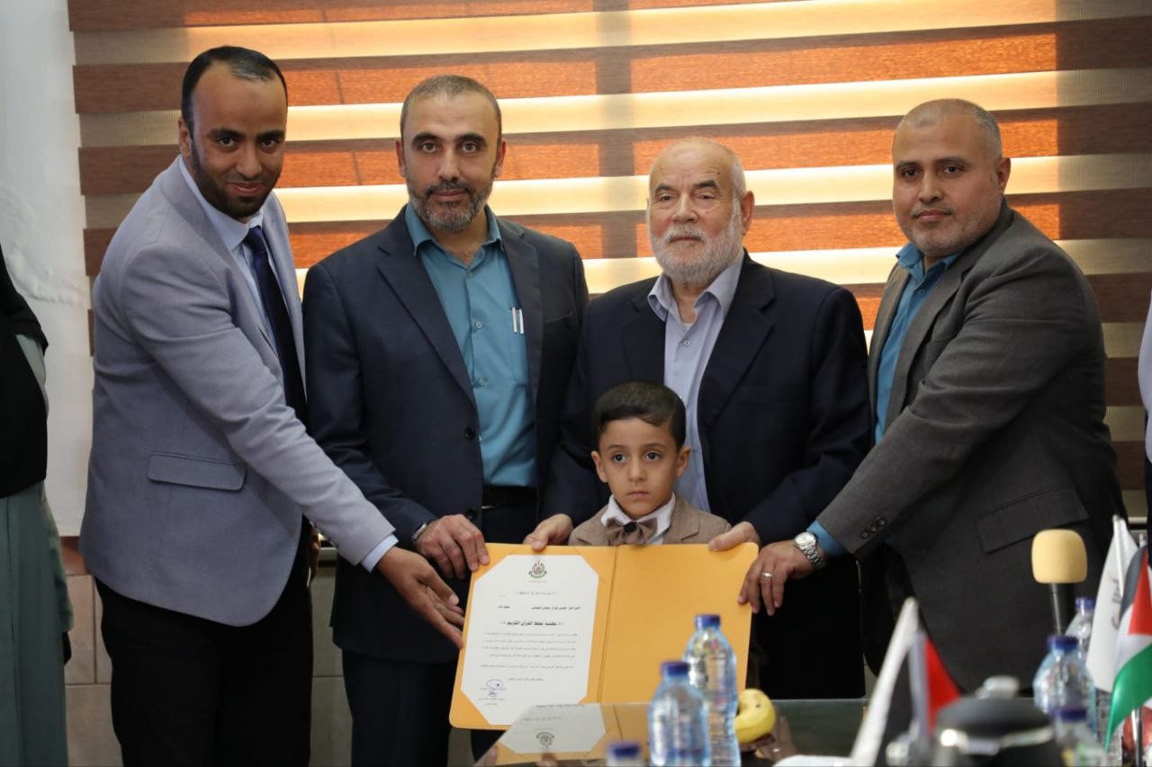 كرمت مؤسسة الشيخ أحمد ياسين الدولية، عصر اليوم الاثنين، الطفل الحسن طراد النجيلي أصغر حافظ للقرآن الكريم في فلسطين، من مدينة خان يونس جنوب قطاع غزة.